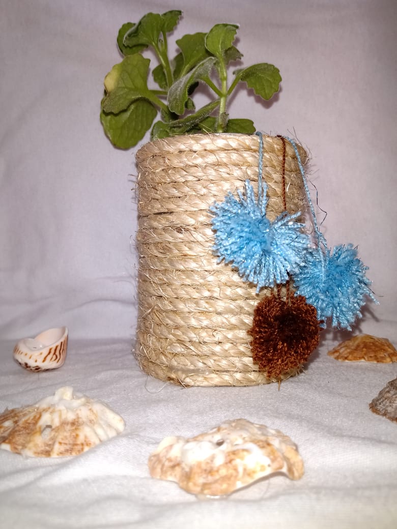 artefacto multi usos para lapicero o plantas decorativo alusivo a la sencillez y elegancia hecho de henequén natural de 2 cabo