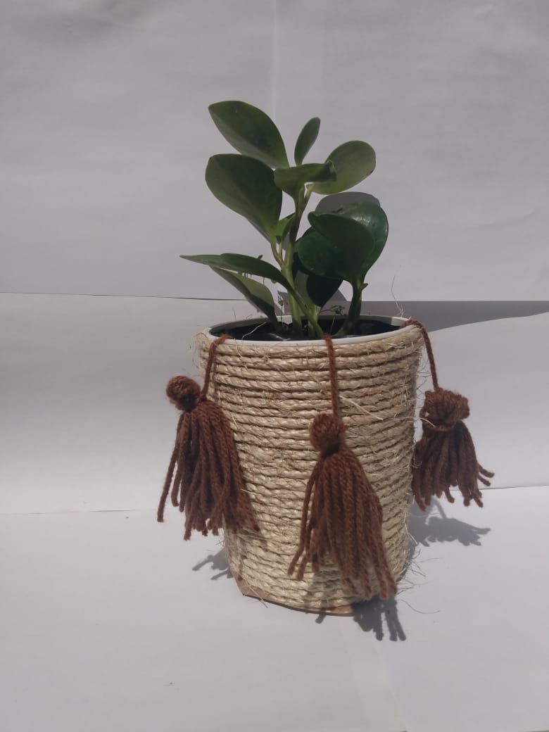artefacto multi usos para lapicero o plantas decorativo alusivo a la sencillez y elegancia hecho de henequén natural de 2 cabo